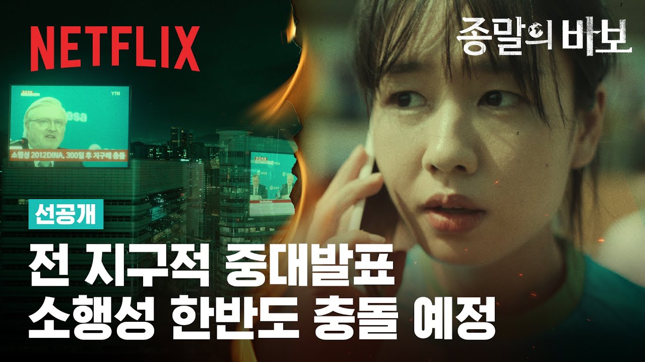 종말의 바보는 넷플릭스 오리지널 시리즈로 최근 공개된 작품인데요. 포스터에도 나와있듯이 일본의 동명 소설을 원작으로 만들어진 작품입니다. 소행성 충돌로 인한 지구 종말이 일어난다는 설정 아래 각계각층의 다양한 사람들이 어떻게 종말을 기다리는지 그리고 있습니다.